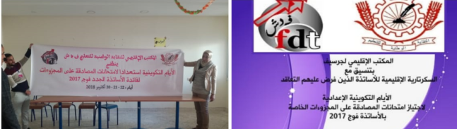 The Provincial Bureau of the SNE-FDT in coordination with the Provincial Secretariat of Teachers Who were enforced to abide by a contract have been organising three pedagogical training days here in GUERCIF for the 2017 teachers to prepare them for the forthcoming exams this week. More than 💯 teachers mainly from primary schools have attended … Continuer la lecture de Pedagogical training days in GUERCIF for the 2017 teachers to prepare them for the forthcoming exams.