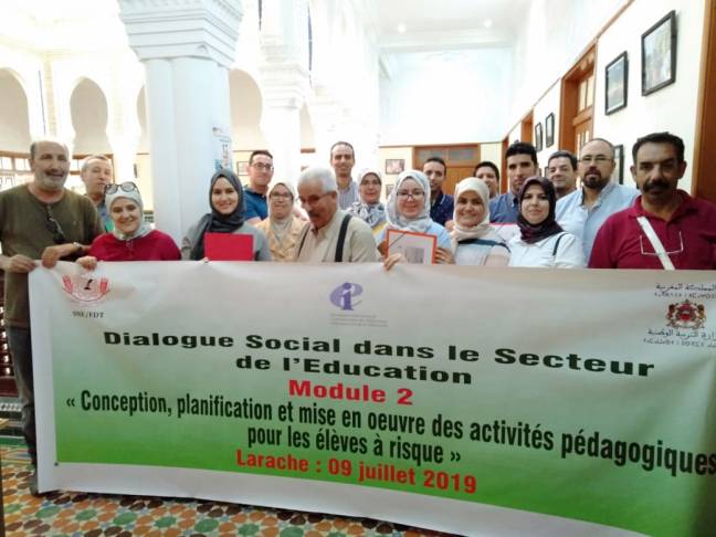 Dans le cadre de son adhésion à l’action de lutte contre le travail des enfants dans les provinces du nord au Maroc (les écoles de la commune de LAAWAMRA , province de LARACHE) menée par l’internationale de l’éducation (IE), le SNE/FDT a prouvé son engagement profond dans ce combat qui nécessite le long souffle et … Continuer la lecture de Dialogue Social dans le secteur de l’Education/les écoles de Laawamra-Larache